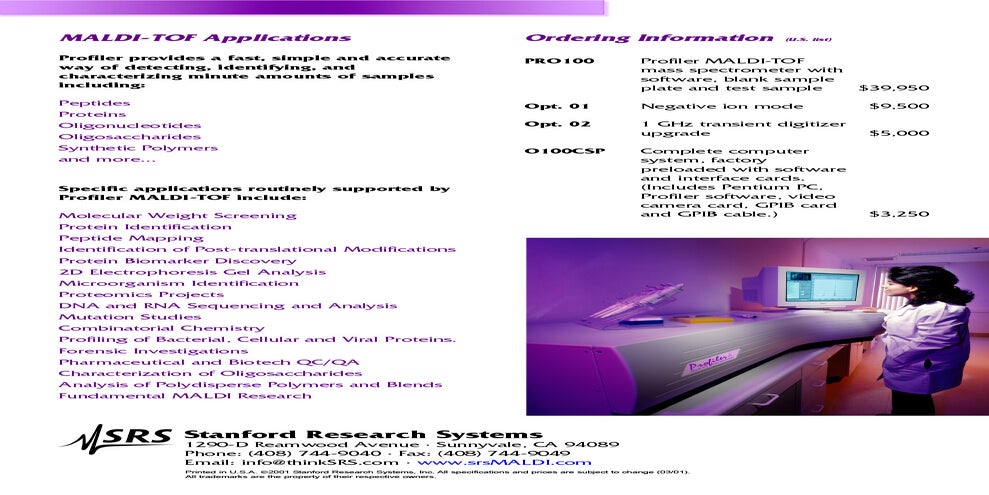 Maldi-Tof Mass Spectrometry Brochure - 8 pages